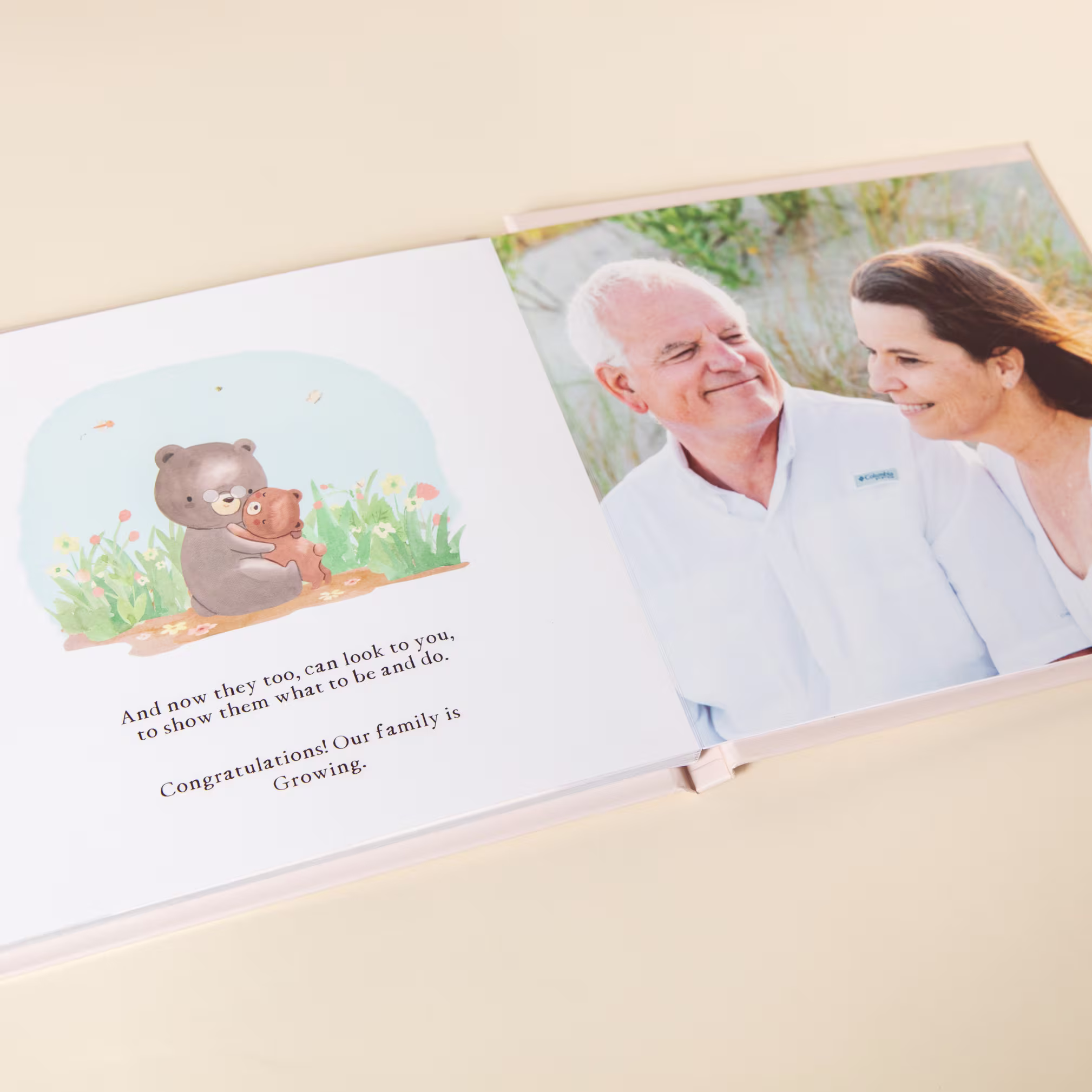 They’ve watched you grow from your very first steps to who you are today— and now, it’s your turn to share the most joyful news of all. Growing is a custom photo book told in sweet rhymes and family photos, designed to surprise your parents with the announcement that you’re expecting. Framed as a heartfelt tribute from an adult child to their own parents, the story walks through childhood milestones and cherished memories— until the final pages reveal that the family is about to grow, again.